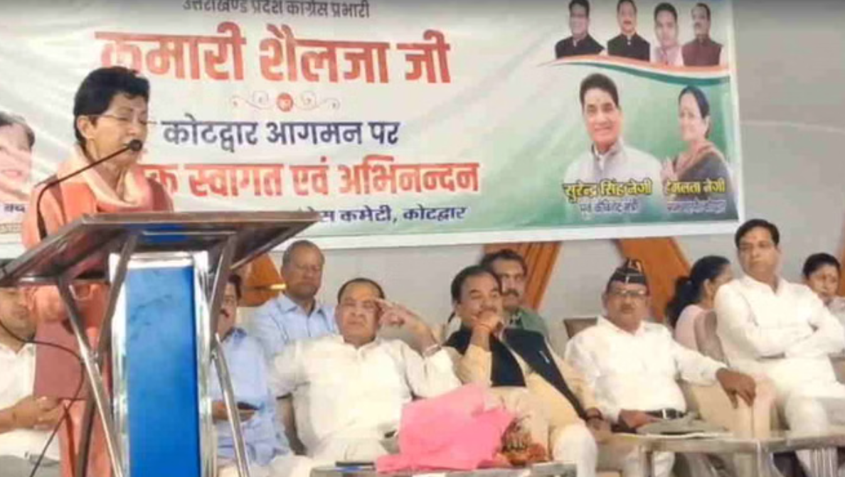 कोटद्वार में कांग्रेस की ओर से कार्यकर्ता सम्मेलन का आयोजन किया गया। इस दौरान उत्तराखंड कांग्रेस प्रभारी कुमारी शैलजा पहुंचीं और जनसभा को संबोधित किया। उन्होंने कहा कि भाजपा सरकार काम नहीं, जुमलेबाजी में यकीन रखती है। हरियाणा और उत्तराखंड सरकार में इन दिनों अपराध, भ्रष्टाचार, रिश्वतखोरी, पेपर लीक, बेरोजगारी को लेकर कंपटीशन चल रहा है।
