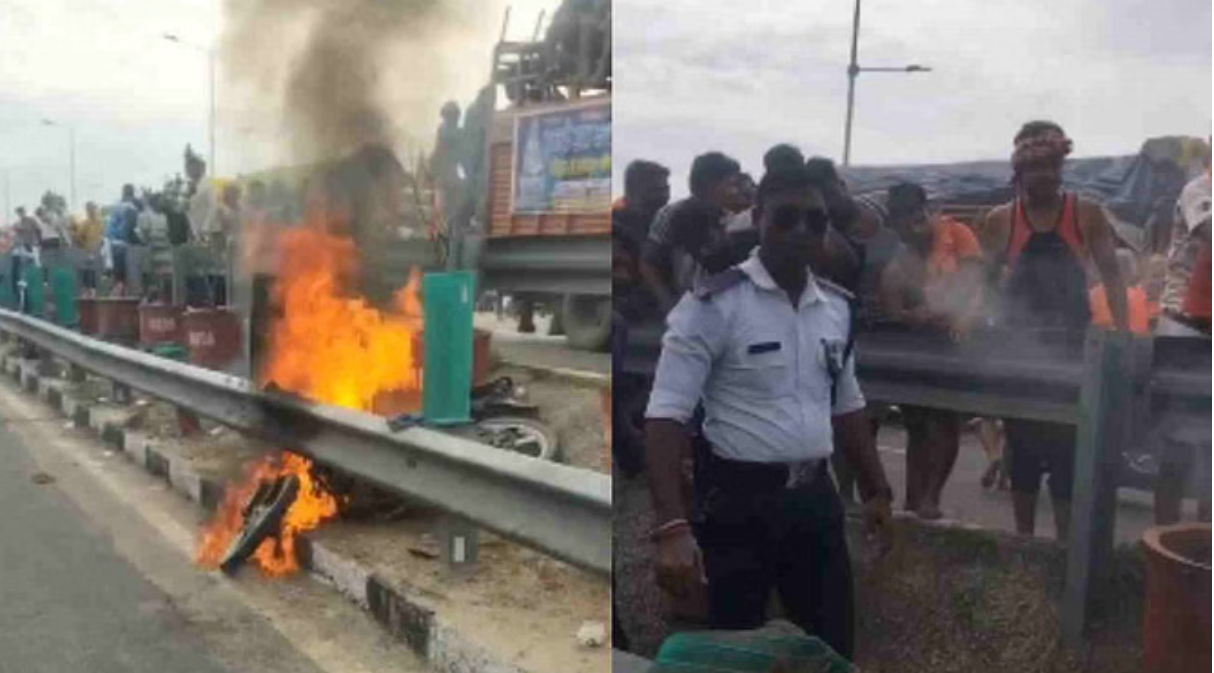 गुरुकुल कांगड़ी फ्लाईओवर पर उस वक्त अफरा-तफरी मच गई जब एक चलती मोटरसाइकिल अचानक आग का गोला बन गई। पुलिसकर्मियों ने तुरंत स्थिति को संभाला और आग पर काबू पाया। गुरुकुल कट पर ड्यूटी में तैनात एडिशनल टीएसआई दीवान सिंह तोमर और कॉन्स्टेबल टीपी शेर सिंह ने जैसे ही बाइक में आग लगते देखा, तुरंत कार्रवाई की।