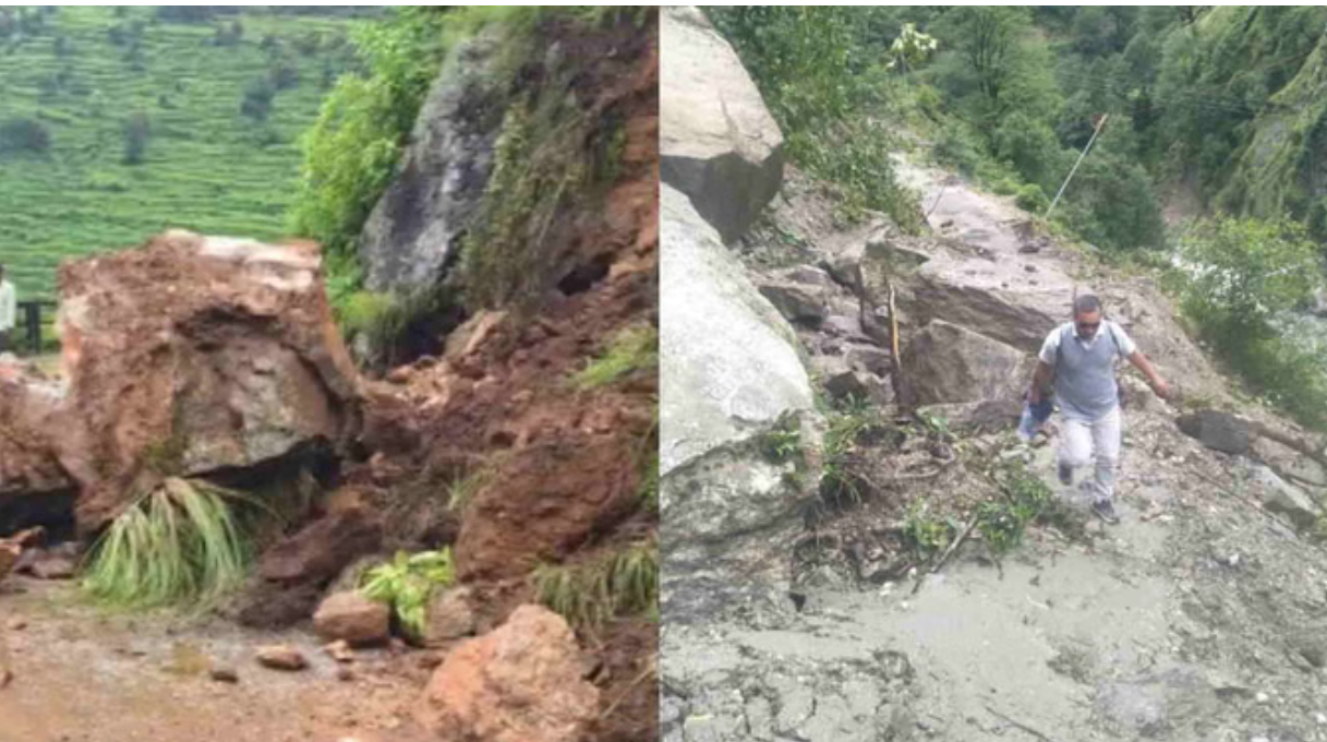 देवप्रयाग डिग्री कॉलेज और मूल्यगांव के बीच रात भर हुई तेज बारिश के कारण पहाड़ से भारी मलबा और बड़े-बड़े बोल्डर सड़क पर आ गिरे। सड़क बंद होने से दूध, सब्जी, और अखबार जैसे आवश्यक सामानों की ढुलाई करने वाले वाहन भी फंसे हुए हैं।